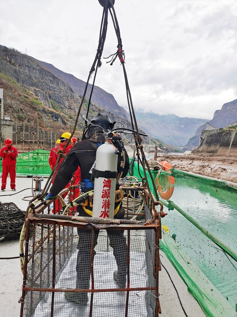 云南溪洛渡水电站—水下碎石清理 工程,现场水深13米, 工作人员均为拥有十几年工作经验的潜水员个个都是兢兢业业专心致志的认真工作